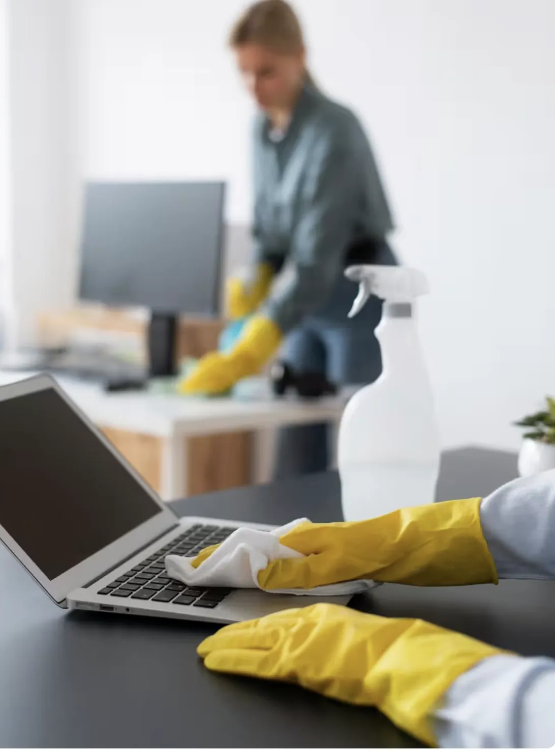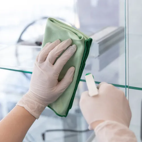 Our trained professionals get to work, tackling every surface with precision. From high-touch areas to hidden corners, we ensure every inch of your space is spotless and sanitized.